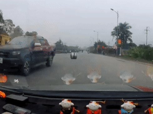 Xe bán tải đang chạy đã làm rơi bồn đựng nước xuống đường. May mắn, tài xế ôtô né tránh kịp thời nên không xảy ra tai nạn đáng tiếc.