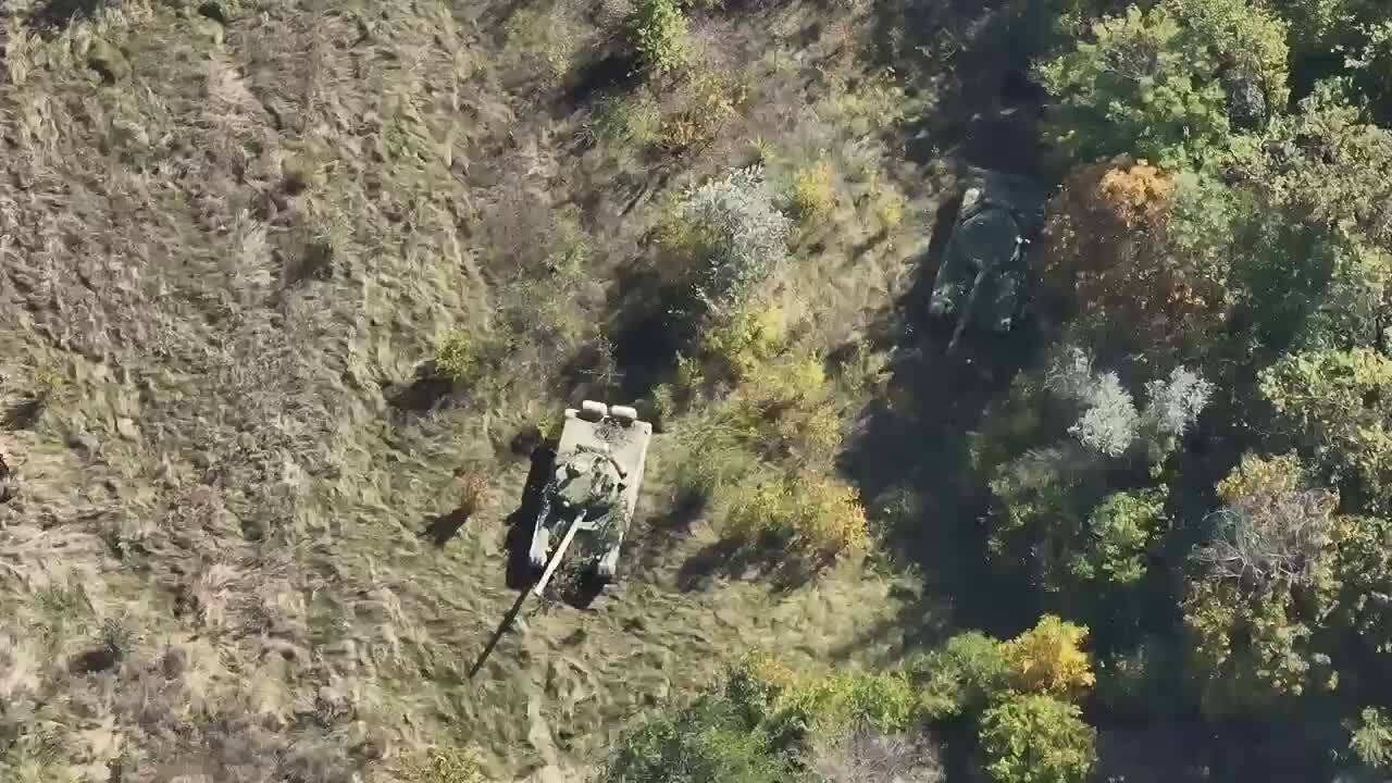 Video do máy bay không người lái (UAV) trinh sát Ukraine quay được cho thấy các vật thể giống xe tăng T-72 của Nga được bố trí cạnh tuyến đường sắt ở chiến trường Zaporizhzhia, nơi quân đội Ukraine đang tăng cường chiến dịch phản công.